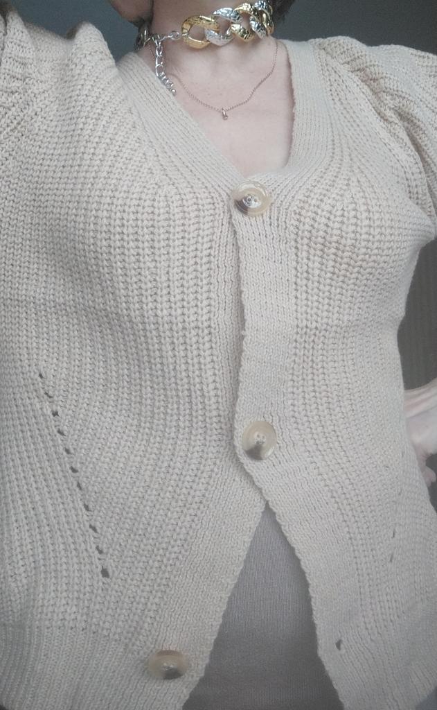 KARDIGANAS, smėlio spalvos. Tinka 48.-50, aptemptos, rankovės šiek tiek trumpos . Rekomenduoju