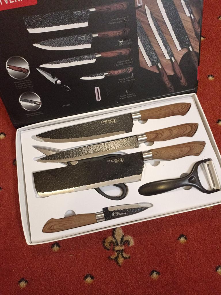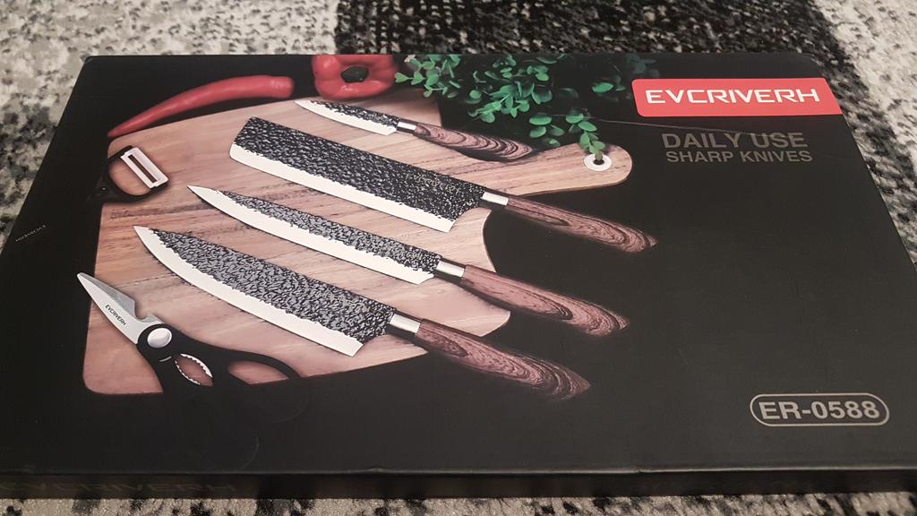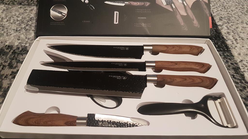🍆🥕🌽🔪 Puikus, prieinamas peilių rinkinys 🔪🥕🥦🍆 ✔️ Kokybiška ✔️ Į komplektaciją įeina: 4 skirtingi peiliai, 1 skustuvas, 1 virtuvinės žirklės ✔️ Rankenos pagamintos iš plastiko su medžio išvaizda. Peilis nudažytas juodai. ✔️Peiliai puikiai laikosi rankoje ✔️ Ašmenys yra aštrūs ir, jei reikia, gali būti iš naujo pagaląsti ✔️ Už tokią kainą, manau, komplektas yra visiškai geras Nuo manęs ⭐️⭐️⭐️⭐️⭐️ Esu labai patenkinta 🤗 Tavo Inge 😘