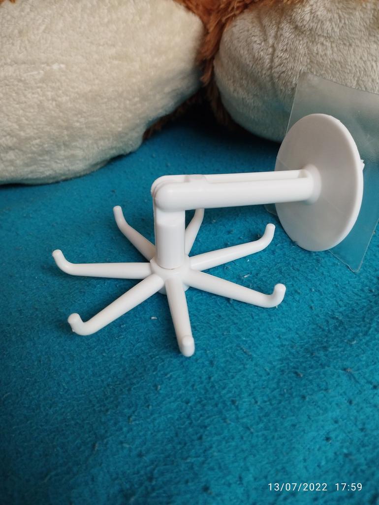 Lipnus virtuvinis kabliukas. Lipnus pasukamas laikiklis virtuvės reikmenims – puikus sprendimas bet kuriai moderniai virtuvei. Privalumai: - galimybė pasukti 360 laipsnių kampu - užima mažai vietos ir leidžia tvarkingai pakabinti daug virtuvės reikmenų - greitas montavimas ant lipnaus pagrindo, kuris užtikrina patikimą tvirtinimą ilgą laiką Pagaminta iš patvaraus plastiko. Dydis 7 * 7,5 * 11 cm. Atkeliavo gerai supakuotas, be defektu. Esu patenkinta užsakymu, rekomenduoju.