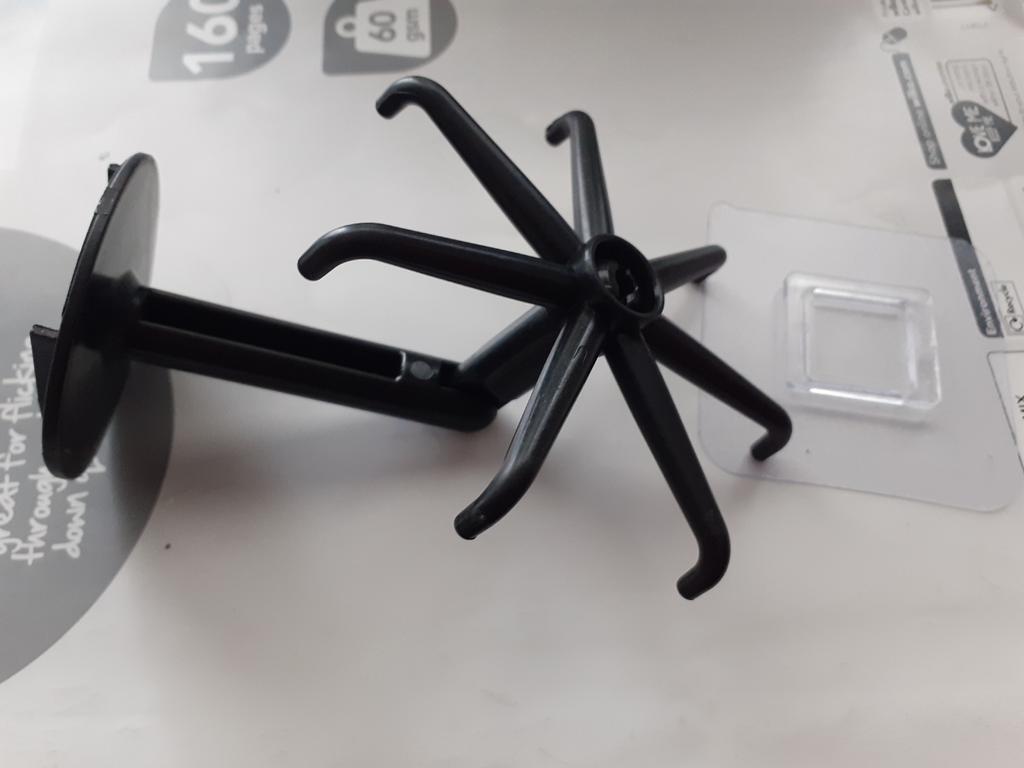 Labai blogai, jis sulūžęs, o plastikas, skirtas klijuoti prie sienos, yra sulenktas ir dėl to jis blogai prilips.