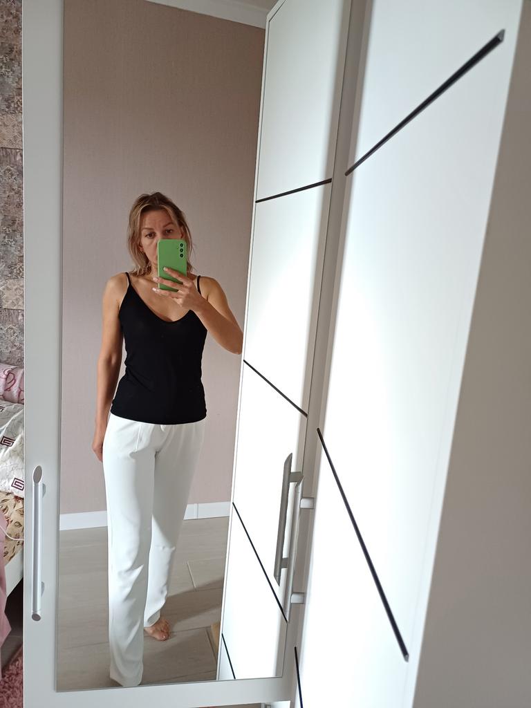 Labai šaunios baltos kelnės. Audinys - sunkus šilkas. 166 cm, 58 kg L tiko