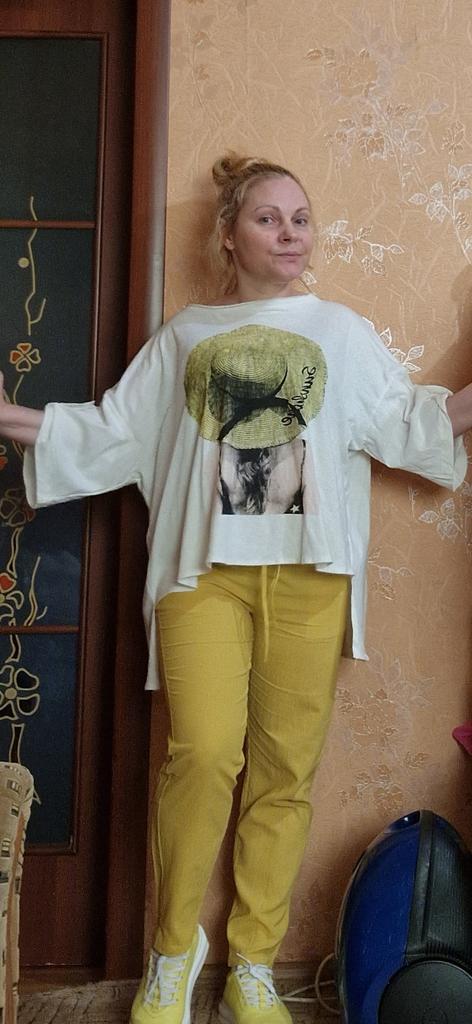 Kelnės šaunios! Jie atvyko pačiu laiku! Nereikia net apsiūti apačios, juosmuo su elastine juostele labai patogus! Vaziuosiu vasara!!!