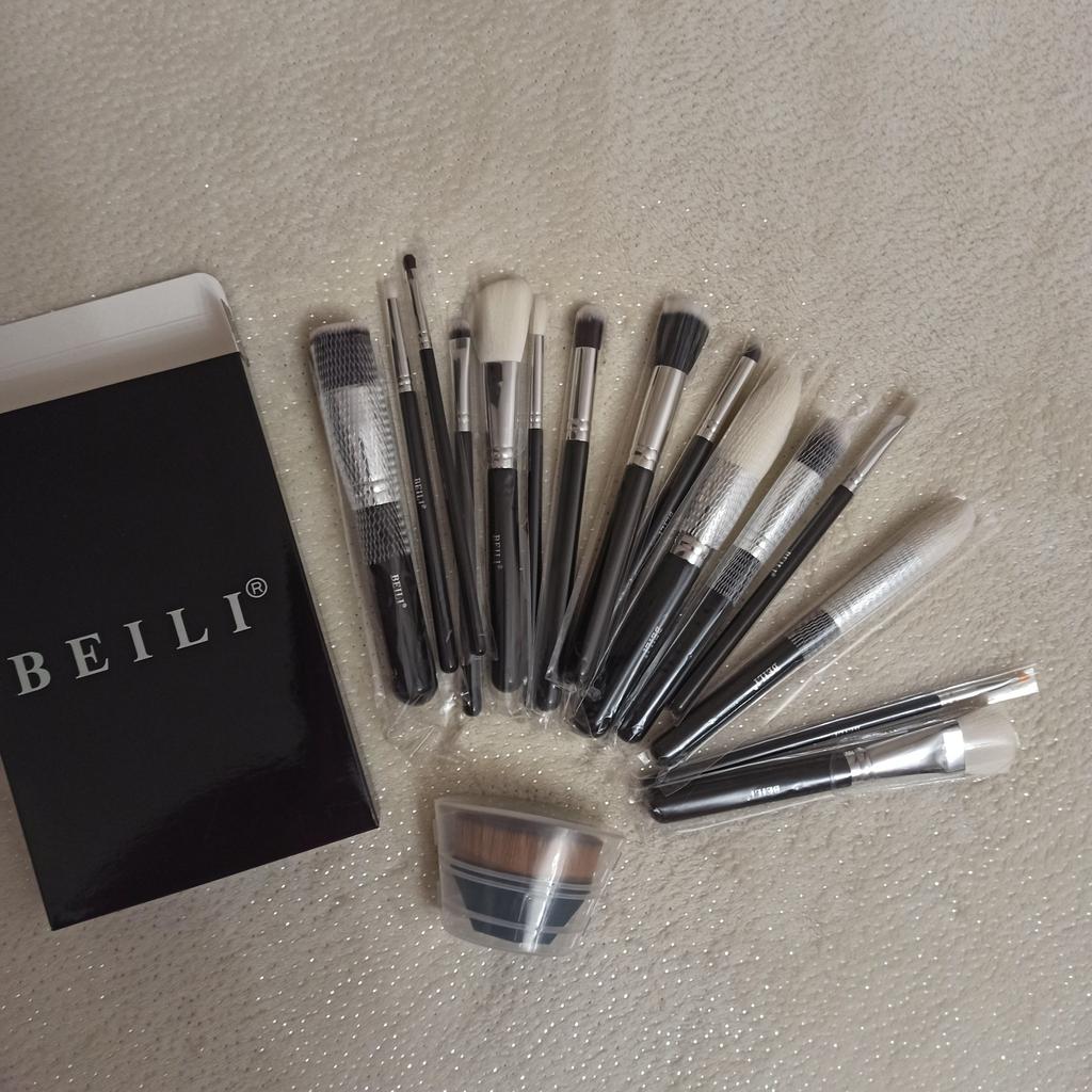 BEILI Makiažo šepetėliai 15 vnt Profesionalūs aukščiausios kokybės sintetiniai ožkų plaukai Kabuki Foundation Blending veido pudra skaistalai korektoriai akių šešėliai su laikikliu