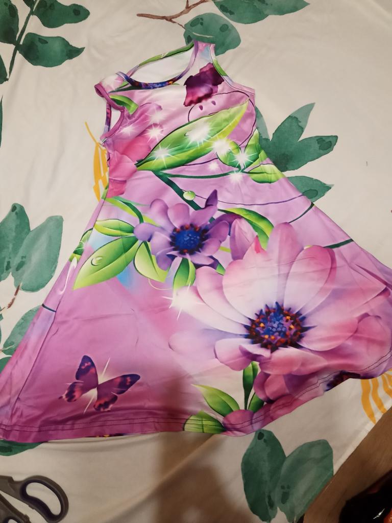 Nuotraukoje matomas aiškesnis raštas, bet suknelė neryški.