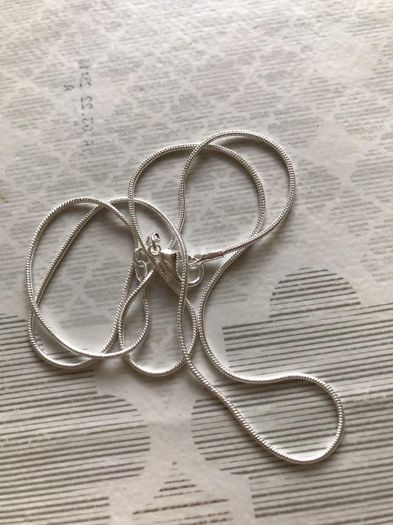 Superinė grandinėlė su pakabuku. Ant grandinėlės ir pakabuko yra prabos ženklai, skirti 925 prabos sidabrui.