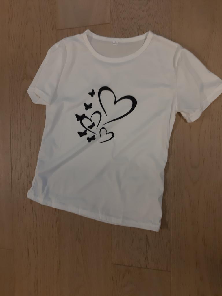 Moteriški marškinėliai su raštu Vasaros madingi marškinėliai Love Heart Butterfly Sweet Trend Woman Moteriški marškinėliai trumpomis rankovėmis grafiniai marškinėliai