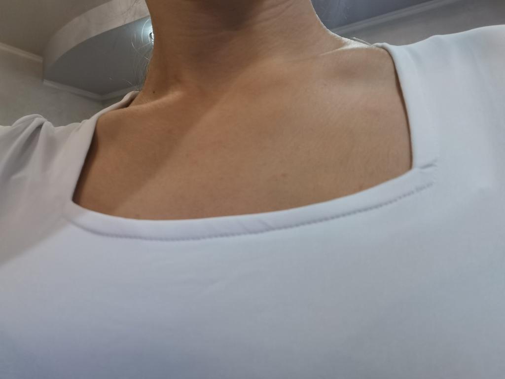 Šiek tiek persišviečia, audinys malonus. Nepatiko kaip pasiūta ties krūtine, kraštai išsikiša. Nuotraukoje nelabai matyti, o šiaip negražu.
