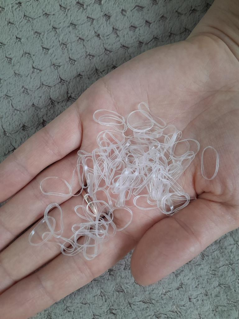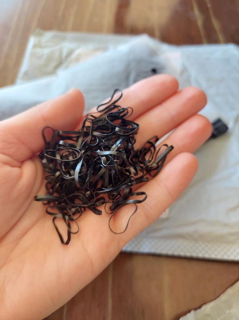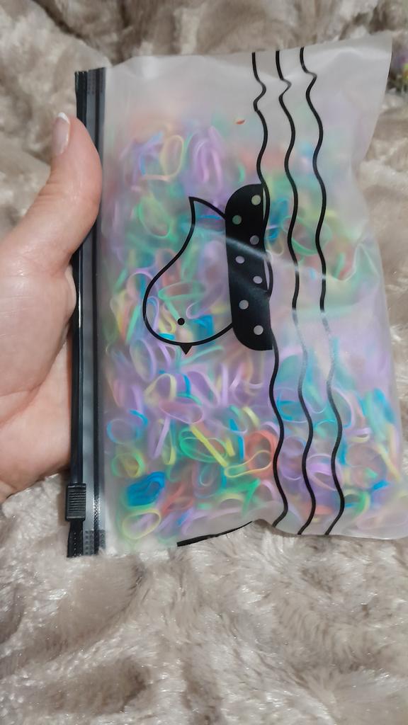 Ačiū pardavėjui ir Jumai už šį guminių juostų rinkinį! Mano dukra turi storus ilgus plaukus, TOP sudėtingoms šukuosenoms! Užsisakiau permatomus, viskas vientisa, maišelis tvirtai laiko gumytes krūvoje, patogu pasiimti. Šiek tiek mažesnis nei atrodė nuotraukoje, bet tvirtas ir elastingas. Labai rekomenduojama!