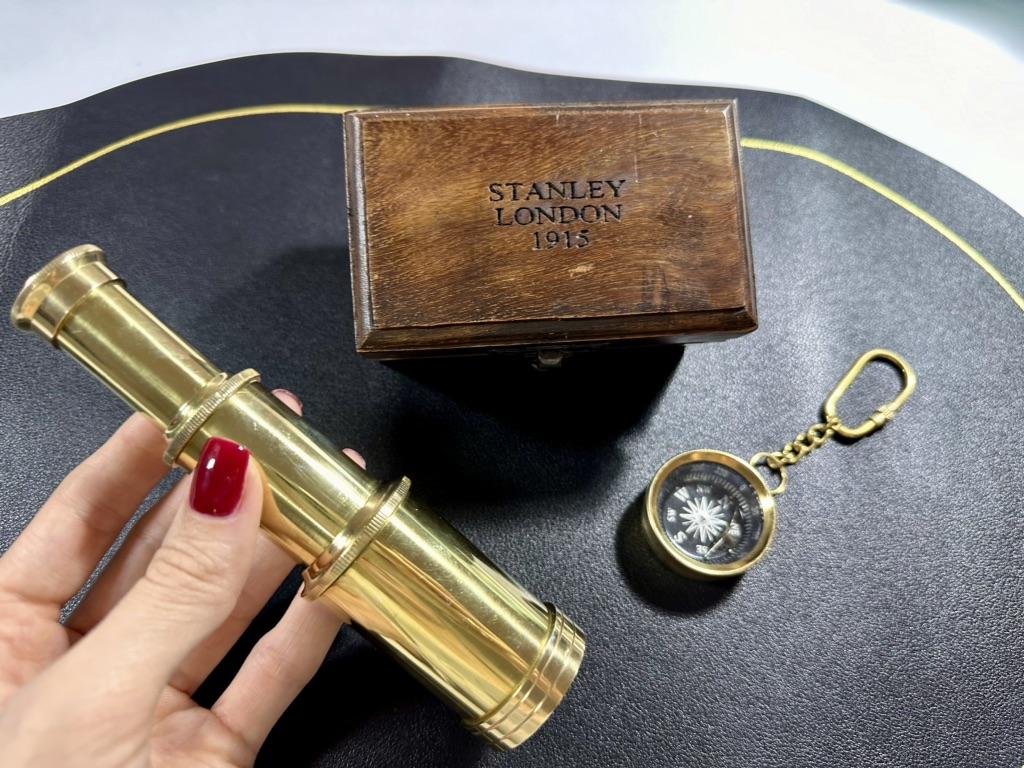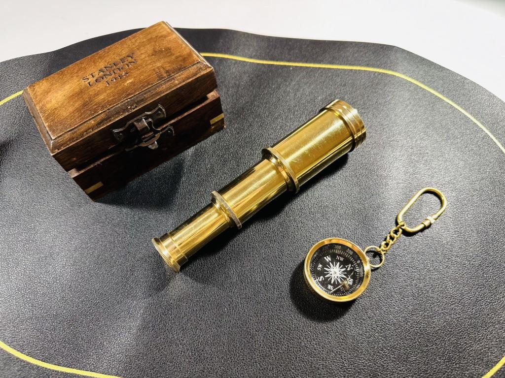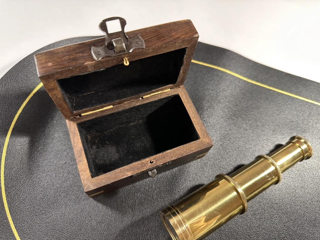 Neįtikėtina kolekcija : Turime didžiausią pasaulyje žalvarinių laivų kolekciją ir platų jūrų teleskopų asortimentą. Mūsų teleskopai yra pagaminti iš aukštos kokybės žalvario, stiklo lęšių, kai kurie yra aptraukti oda, kiti yra mediniai.. Dauguma teleskopų yra supakuoti į medinius ir odinius dėklus, kaip aprašyta, taip pat yra skirtingos apdailos, antikvarinės, bronzinės, tamsios, nikelio poliruotos.. Visi mūsų teleskopai yra įkvėpti