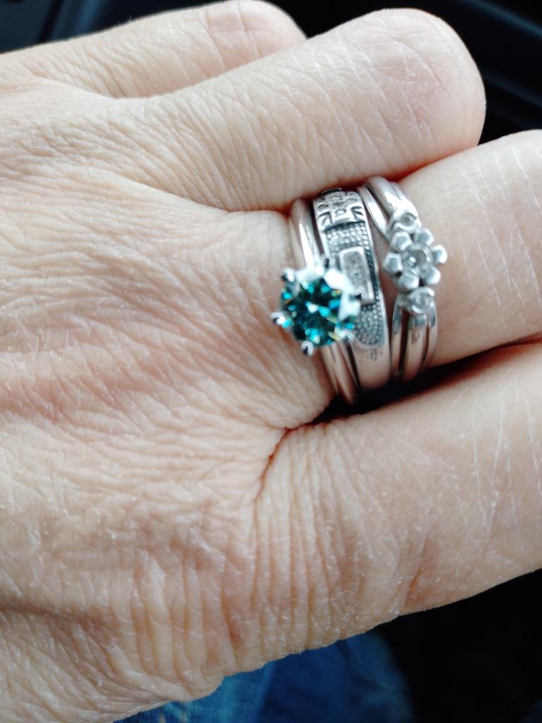 Moissanite žalia yra tokia graži, mirga šviesoje. Dydis atitinka deklaruotą dydį. Labai grazus žiedas.