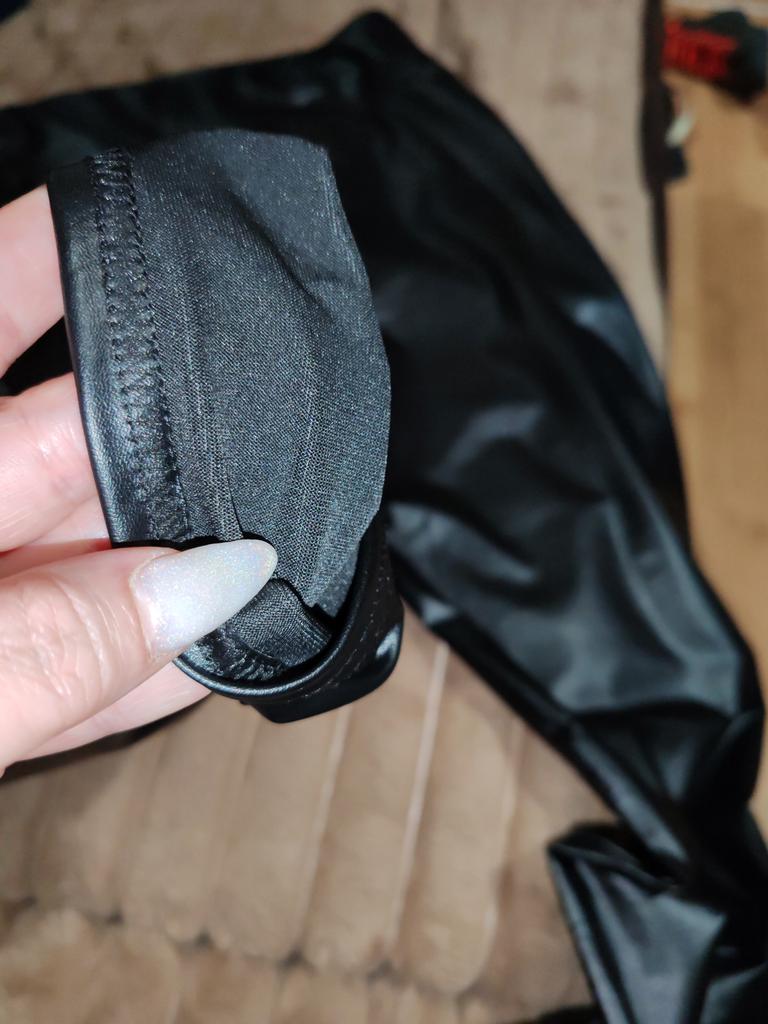 Kokybė labai gera, visos siūlės lygios, gerai išdirbtos. Nėra pašalinio kvapo! Dėl liemens parametrų 82, klubų 100, aš paėmiau XXL dydį, atsisėdau normaliai, bet jie labai aptempti, tinka kaip antra oda. Todėl visi figūros trūkumai bus pabrėžti. Vienintelis dalykas, kad antblauzdžiai labai plūduriuoja. Namuose nešiojau 5 minutes - tada kojos tikrai buvo šlapios, audinys visiškai nekvėpuoja, nors "odelė" tik išorėje, viduje kažkokia kita medžiaga. O visa kita puiku!