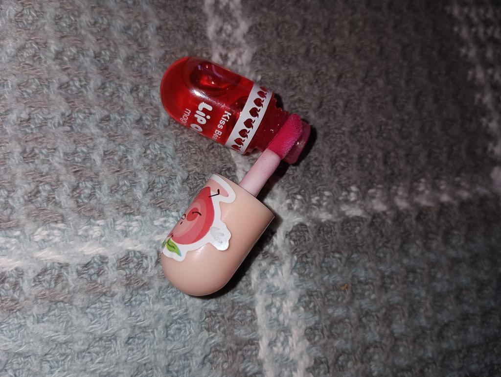 Mažos, persikinio kvapo, o lūpos iškart po užtepimo tampa šviesiai rausvos spalvos