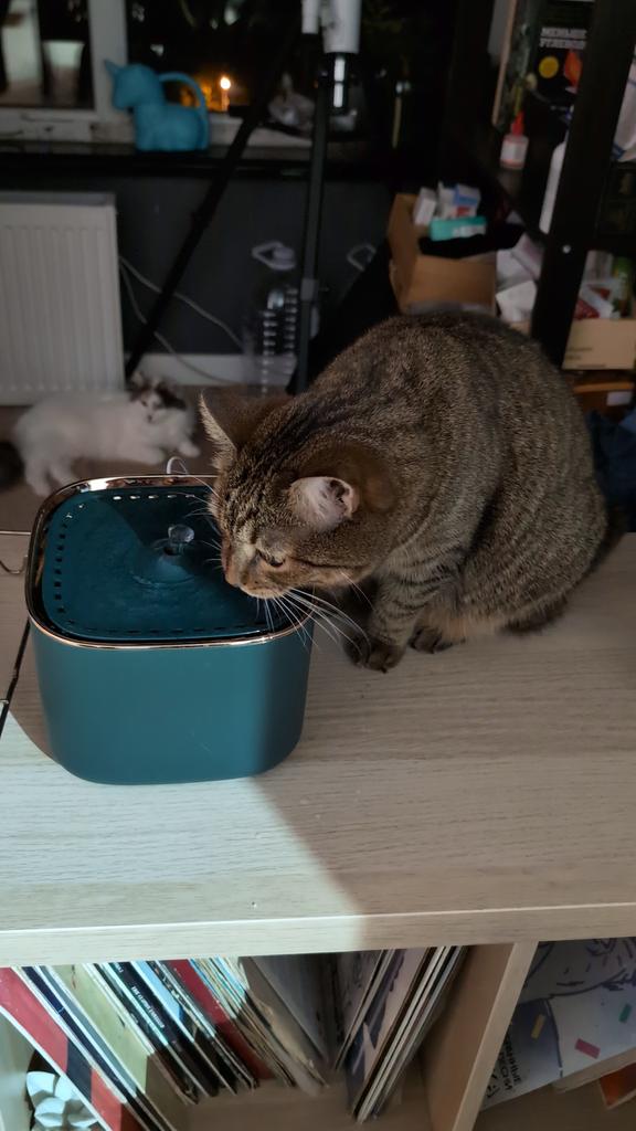 Mūsų katės mėgsta šį mažą fontaną, jos geria geriau.