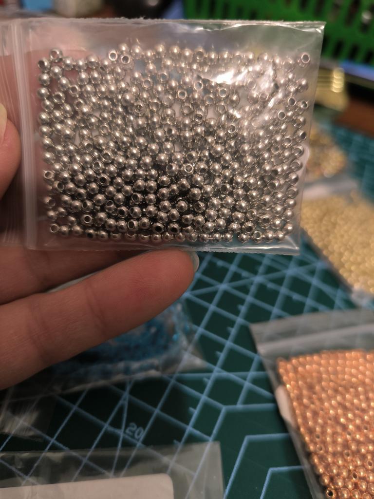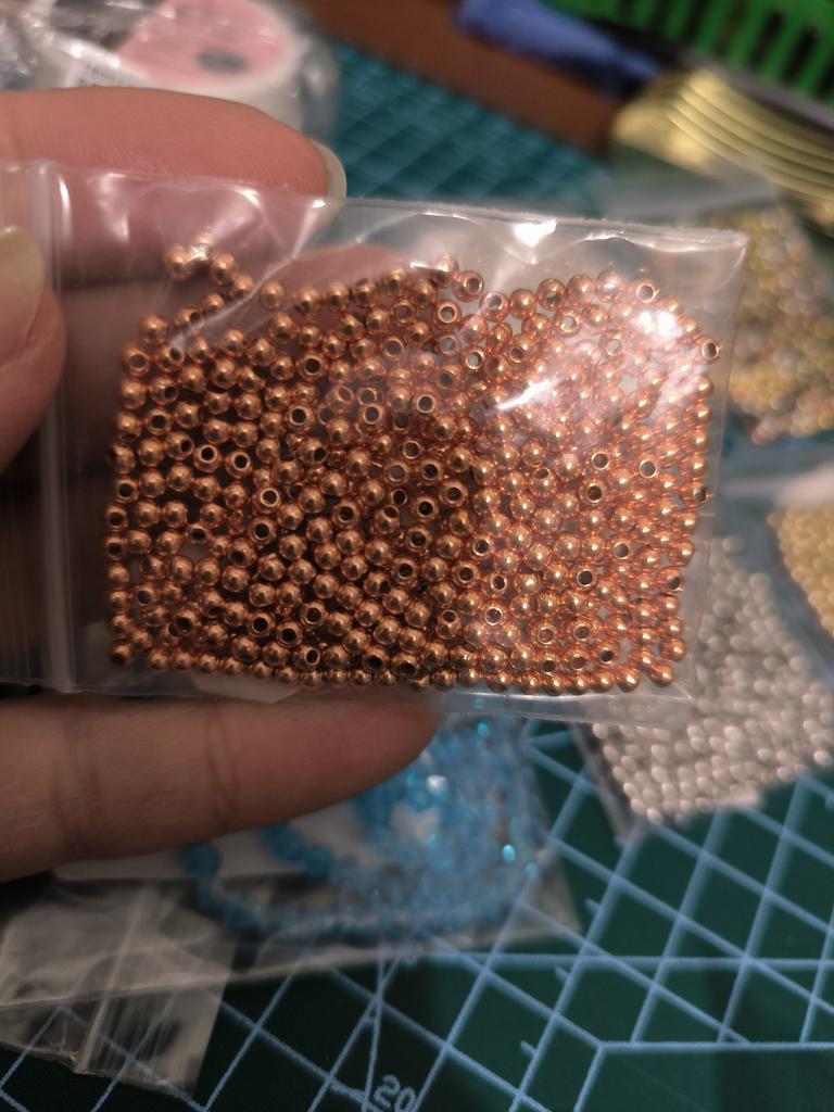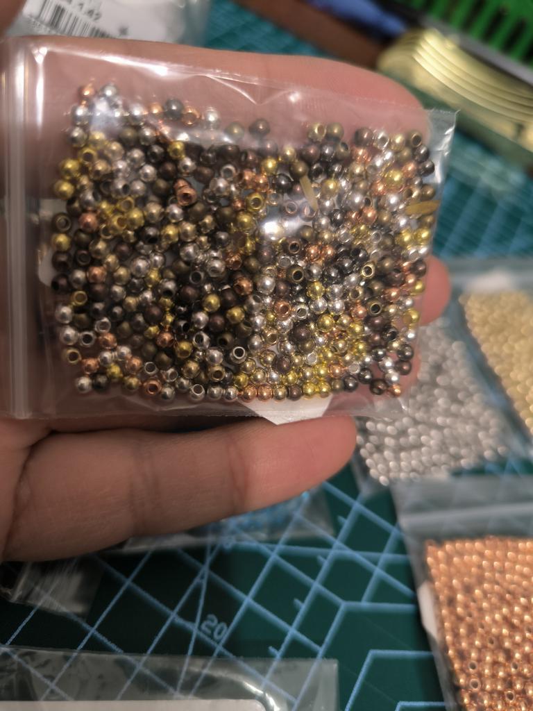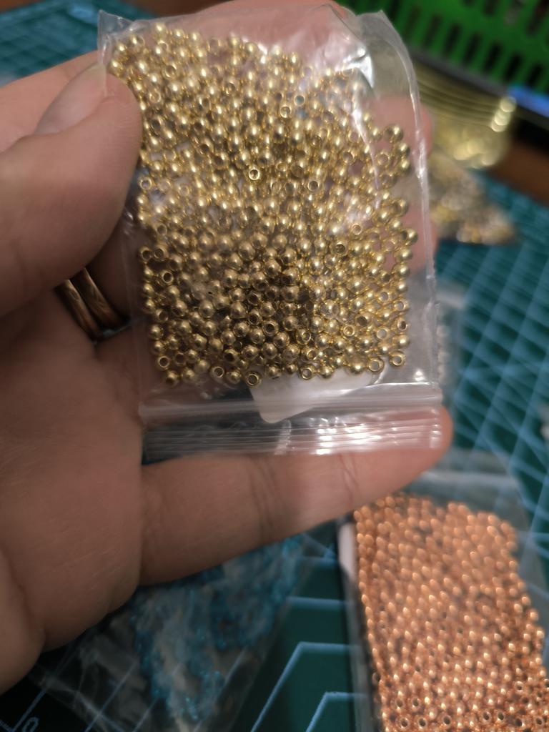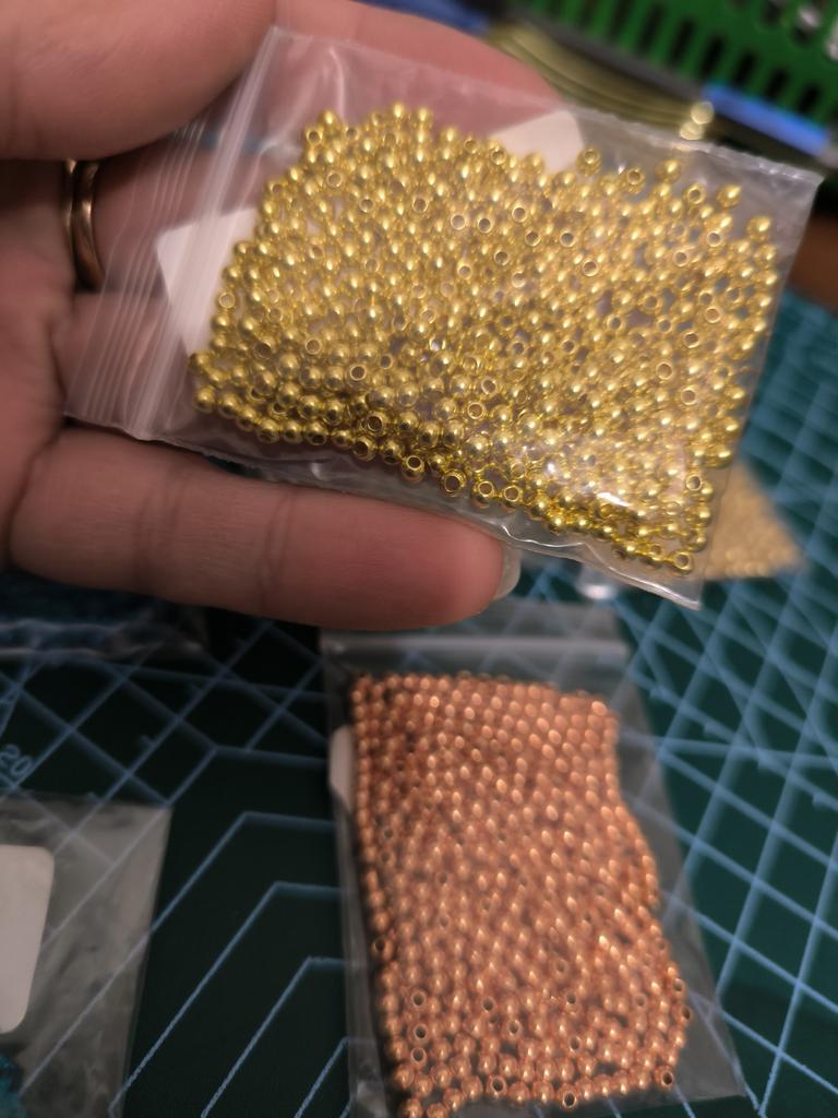 Įvairių dydžių karoliukų spalva labai skiriasi viena nuo kitos: nuo žalvario iki vario.. Pernai prekių kokybė buvo geresnė.
