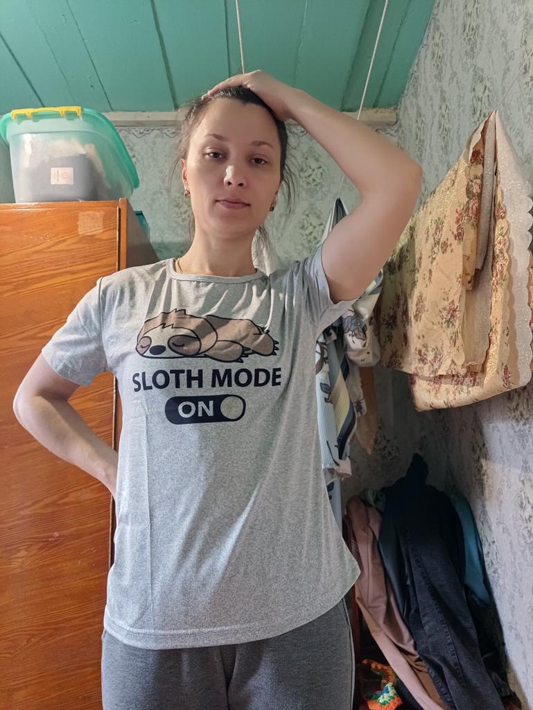 L dydį paėmiau 42, kad nebūtų aptemptas. Medžiaga minkšta, glotni. Piešinys atspausdintas dažais, ne lipdukas!