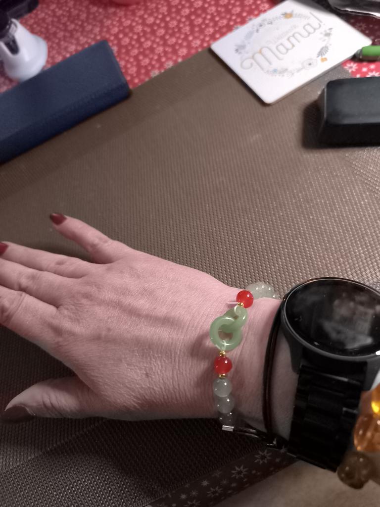 Nuostabi apyranke! Iš akmenų. Turiu 17 cm riešą - tiesiog tinka. Jei jūsų riešas platesnis, jis suspaus jūsų ranką ir bus atstumai tarp karoliukų. Rekomenduoju