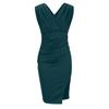 Moteriška vidutinio dydžio suknelė su aukštu juosmeniu, V formos iškirpte be rankovių su klostuotu šonu, skeltu krašteliu, vientisos spalvos kūno formos suknelė