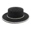 Bonnet Black lace lampshade straw hat Fashion tassel pearl big rim fisherman hatstandard mesh big eave straw hat tide