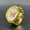 Moteriškas kvarco analoginis žiedinis laikrodis su drugeliu. Elastinė dovana skirta Creati