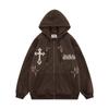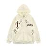 Smėlio spalvos su užtrauktuku su gobtuvu kryžminiai grafiniai gobtuvai y2k vyriški drabužiai.
