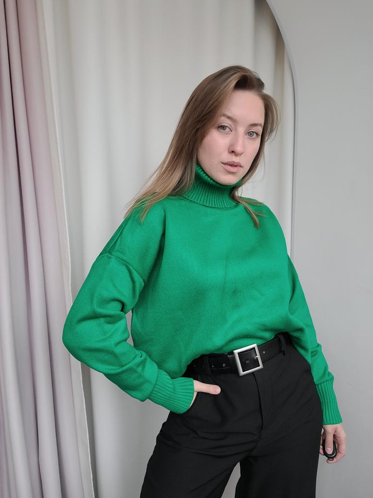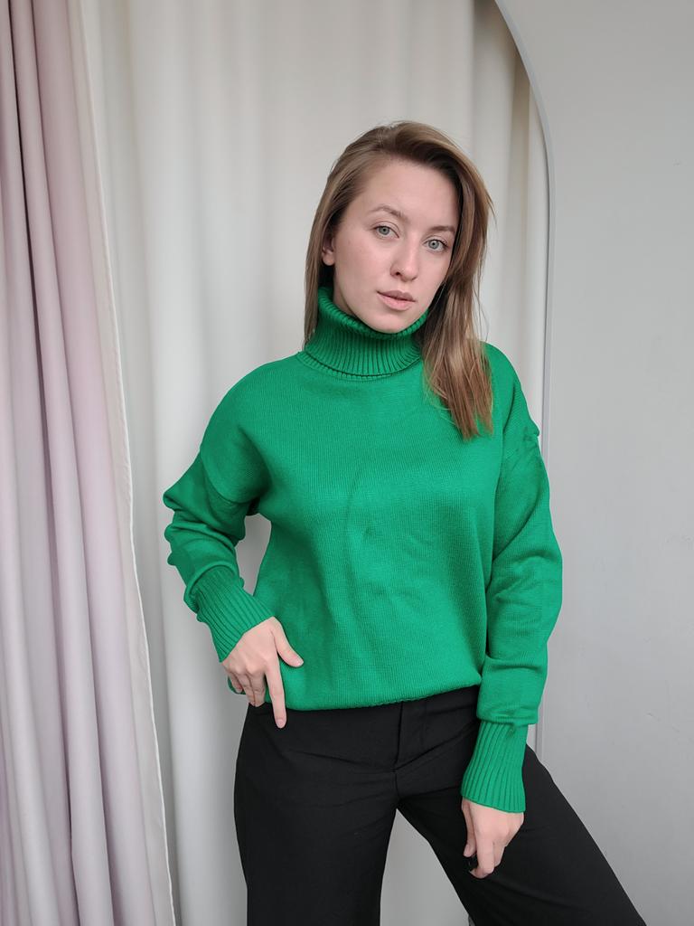 Moteriškas rudens žiemos megztinis su aukštu kaklu ilgomis rankovėmis vienspalviai palaidi megzti viršutiniai megztiniai