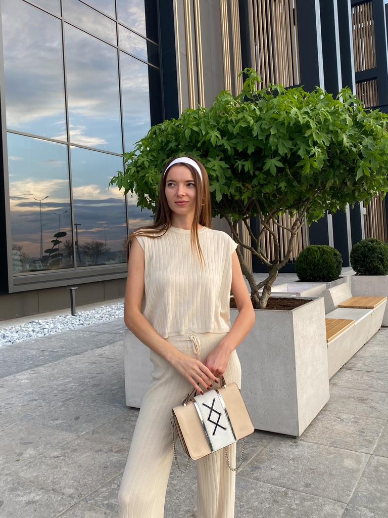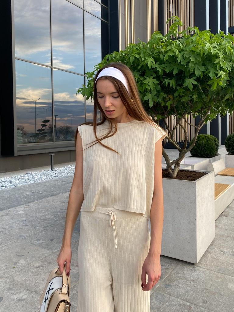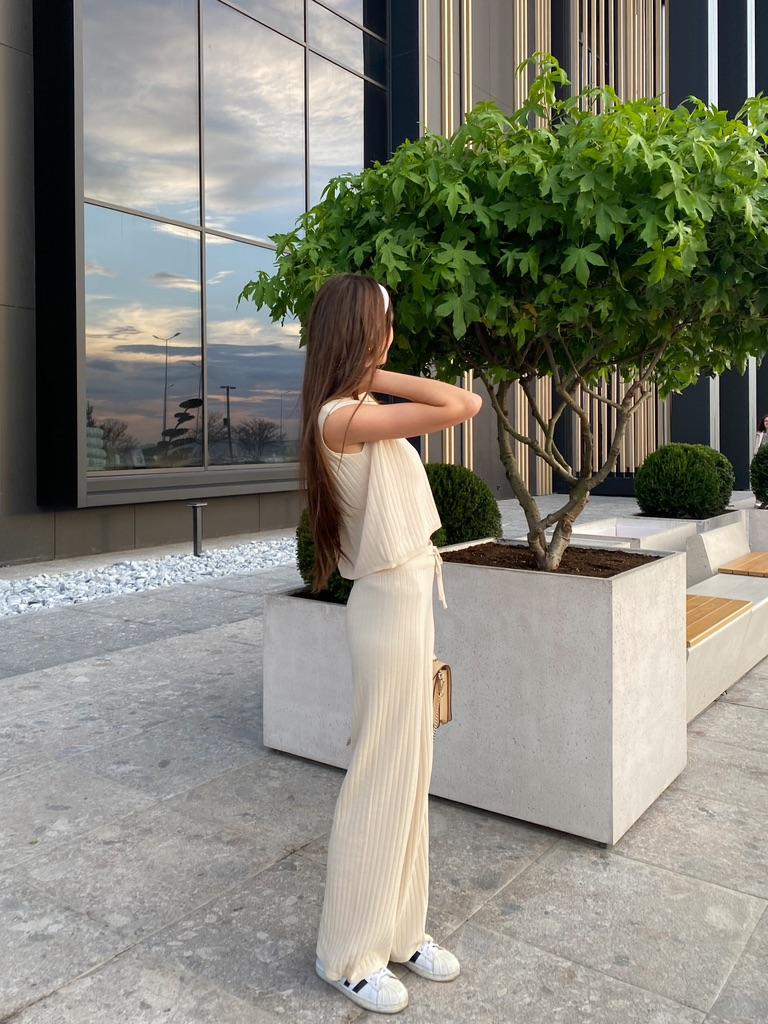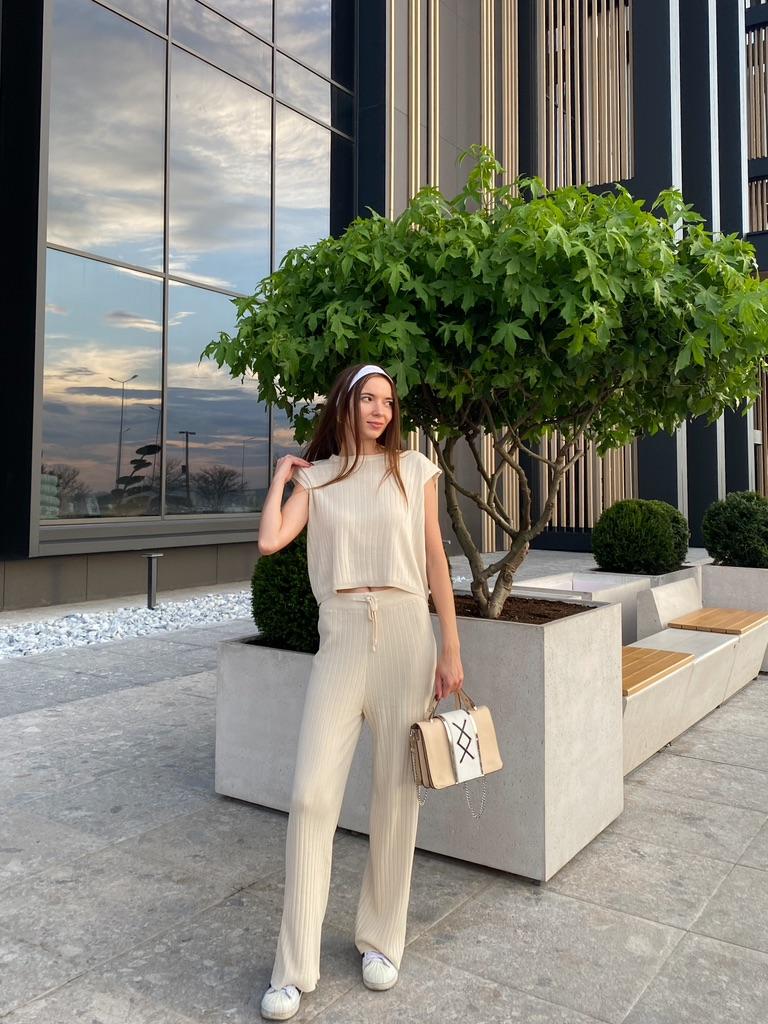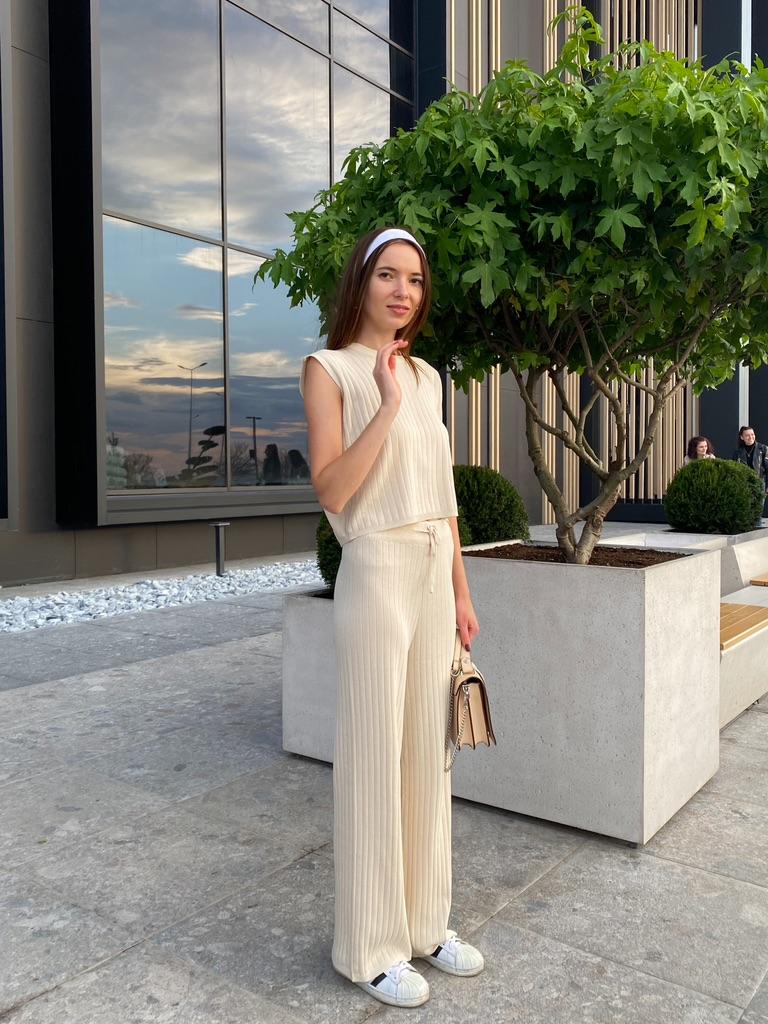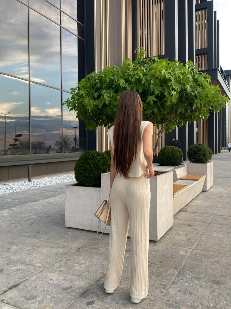 Pavasario vasaros moterų laisvas dviejų dalių komplektas Vienspalvis megztas kostiumas be rankovių