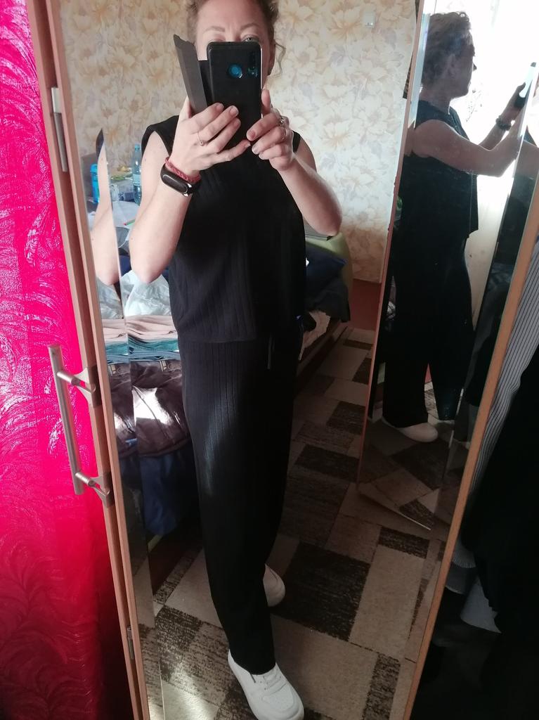 Dviejų dalių kelnių kostiumas be rankovių👖👕 🔆 🔆Pristatymo laikas 🔆: 26 dienos į Vokietiją. Pristatymo laikas vėlavo, bet atsiprašydamas gavau nuolaidą. 👍☺️ 🔆Pristatymo apimtis 🔆: Į pristatymą įeina kelnių komplektas, susidedantis iš 2 dalių, 👕👖atitinkamos spalvos. Rinkinį galima rinktis iš 5 skirtingų spalvų. Užsisakiau juodą, spalva yra tokia, kaip nuotraukoje. Galima įsigyti vieno dydžio. Gamintojas nurodo: krūtinės apimtis 100cm, Ta-65cm, klubų apimtis-100cm. Manau informacija teisinga, bet galiu pridurti, kad kostiumas turėtų tikti iki juosmens iki 70 cm. Mano išmatavimai 90-65-90 cm . Komplektukas man labai tinka! Dažniausiai dėviu 36-38 dydžių sukneles. Sveriu 55 kg, išsidėsčiusi 167 cm. KOKYBĖ🔆: rinkinys puikios kokybės, kasdieniškas ir nepermatomas. ,su plačiomis kelnėmis.,šiek tiek tamprus. Apie medžiagos sudėtį: Deja, etiketės neradau, bet galima suprasti, kad audinys viskozinis, nors gamintojo aprašyme parašyta "poliesteris". Tai mano nuomonė. Galbūt tai viskozės ir poliesterio mišinys. ✅️Apibendrinant galima teigti, kad tai gražus dviejų dalių kostiumėlis 👖🧥 puikiai tiks pavasariui, rudeniui ir vasarai. 👍👍🔝 Ačiū Joom ir pardavėjui! 5 žvaigždutės! 🌟 Mielai rekomenduočiau prekę!👍👕👖