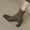 Krazing Pot Microfiber Flock Winter Square Toe Thick High Heels Slip on Stretch Boots Stovepipe Women Ankle Boots