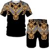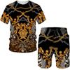 Mens T Shirts and Shorts Set Fashion Golden Pattern Luxury Floral 3D Print Tracksuit Casual Streetwear Male Men Clothing Suit