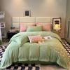 A klasės pieno aksomas keturių dalių žieminis šiltas sutirštintas dvipusis aksominis antklodės užvalkalas didelio tankio matinis vienspalvis raižytas aksomas