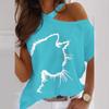 Moteriški vasaros raidžių spausdinimo marškinėliai su kaklo marškinėliais, didesnio dydžio laisvalaikio marškinėliai trumpomis rankovėmis