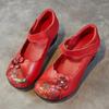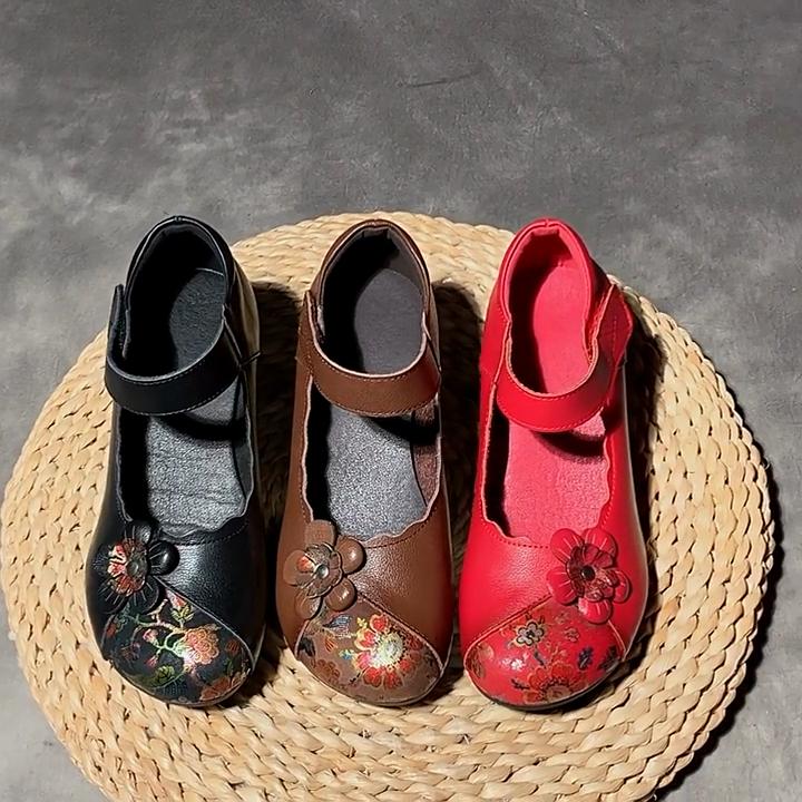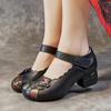 Johnature Etninio stiliaus natūralios odos marginti moteriški batai retro apvalūs pirštai stori kulnai minkšto pado pompos