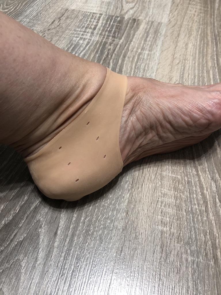 Plonas silikonas, malonus, ant kojų nesijaučia, pirkau, kad apsaugočiau pėdkelnes nuo plyšimo.