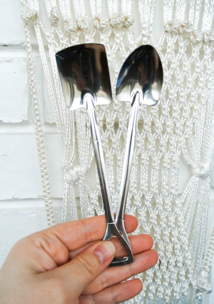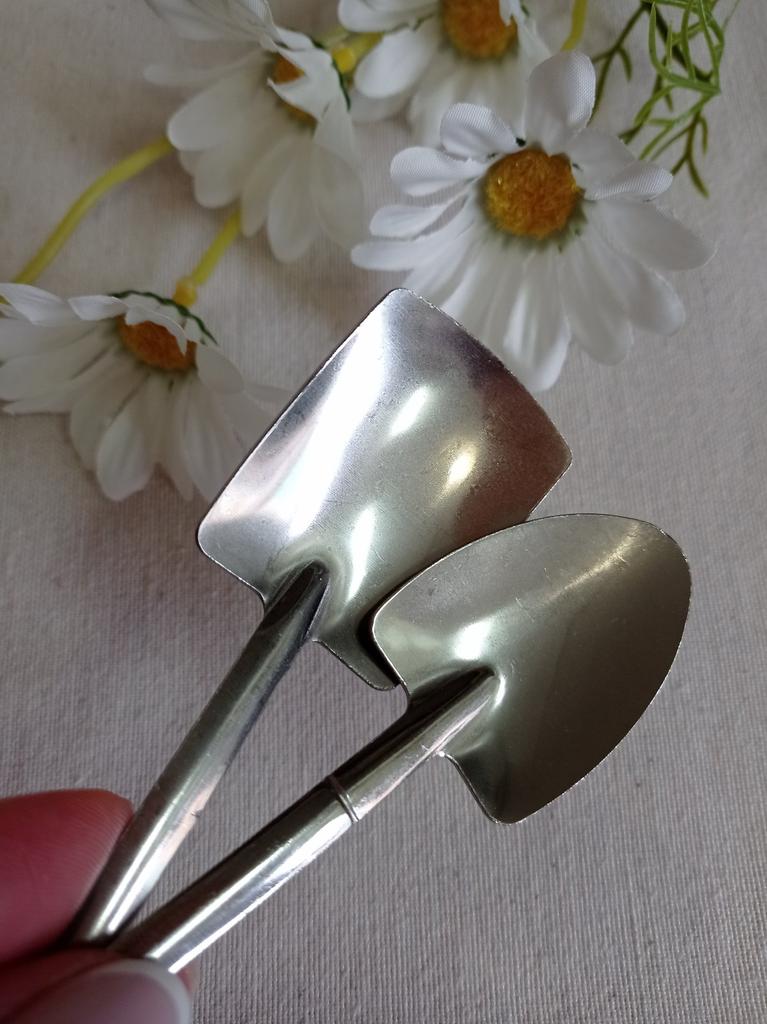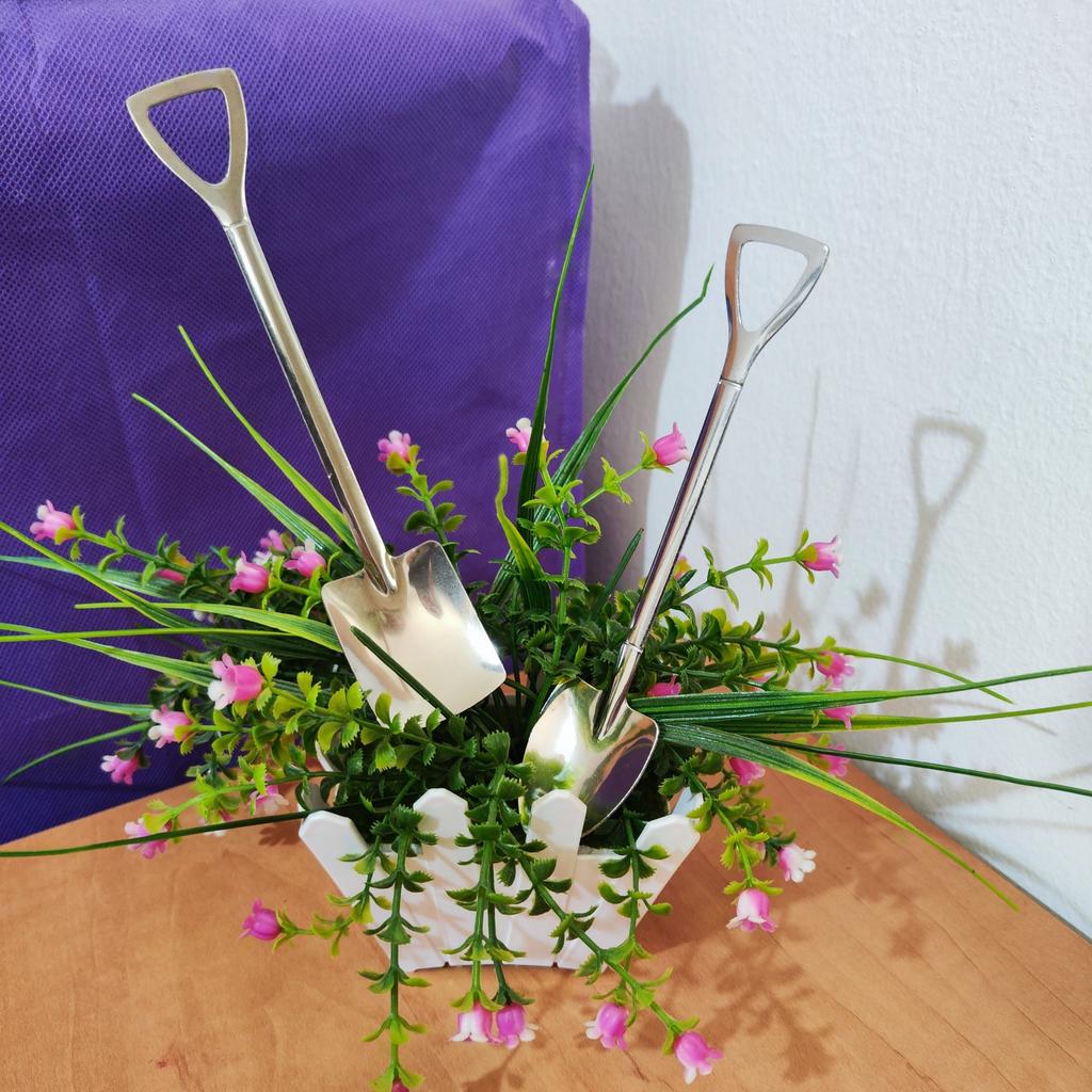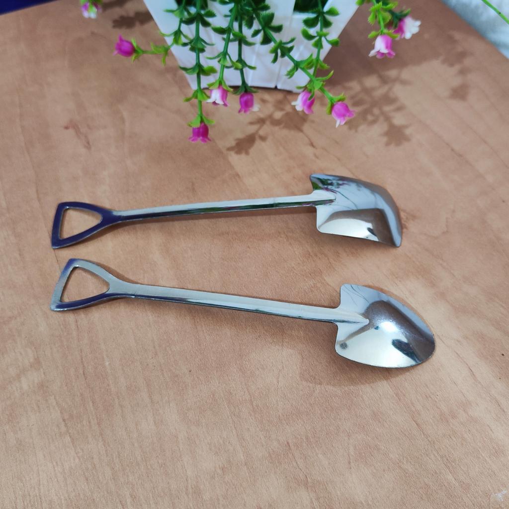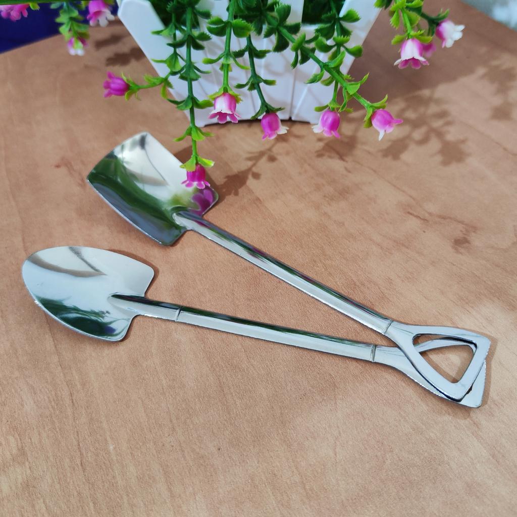 2 vnt. arbatiniai šaukšteliai nerūdijančio plieno kastuvų pavidalu