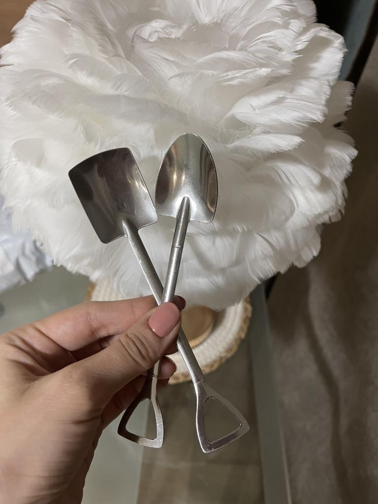 Arbatos šaukšteliai Pamačiau šiuos neįprastus šaukštus ir nusprendžiau juos užsisakyti. Pardavėjas turi įvairių variacijų, aš išsirinkau dviejų šaukštų rinkinį: du skirtingi "kastuvai"😅 Labai patogus, beje. Medžiaga gera, išplovus indaplovėje liko tokie, kokie buvo pradžioje, niekas nenusileido.