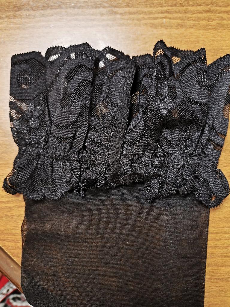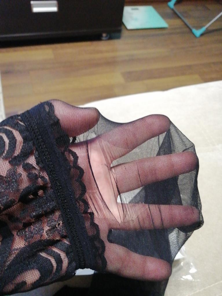 Kojinės, kokybiškas nailonas, bet yra vienas BET!, jei dėvi kojines su diržu, tada viskas ok! Bet jei dėvi kojines kaip mano žmona, tik atskirai, tada jos neatlaiko. Jūs negalite jų nešioti patys. Nėriniai negumuoti, yra viena plona elastinė juosta ir vaikštant nukrenta.