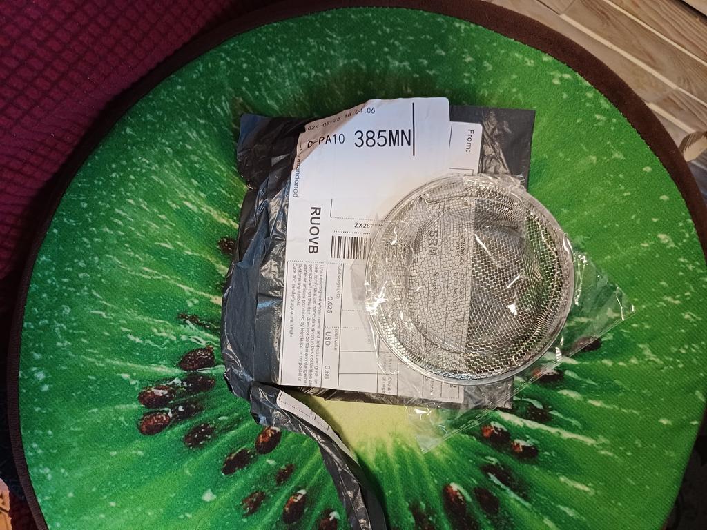 Gavau nerūdijančio plieno gaudymo tinklą. Ji nuėjo prie virtuvės kriauklės. Preke patenkinta. Ačiū pardavėjui ir Jum.