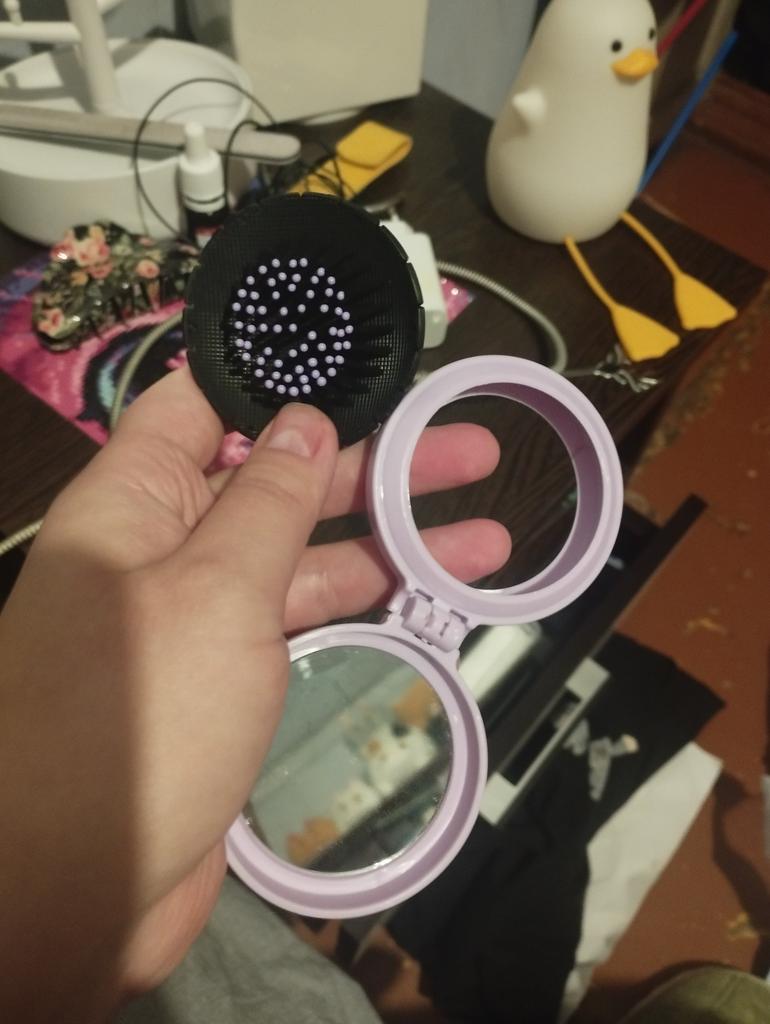 Puikus šepetys su veidrodžiu. Kaip tik rankinei.. Ačiū.