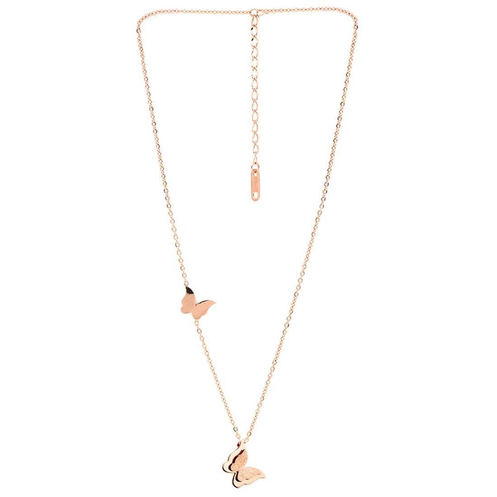 Rose Gold Stainless Steel Dual Butterfly Charm Pendant for Women (Rose Gold)