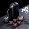 Purpuriniai moliniai arbatos puodeliai Keraminiai nešiojami arbatos rinkiniai, įskaitant 1 puodą + 1 arbatos puodelį + 4 puodelius arbatinuko lauko kelionių Kung Fu Gaiwan dovanos