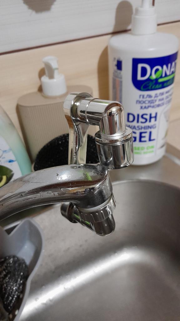 Universalus rotacinis maišytuvas/purkštukas Šaunus antgalis! Puikiai tinka tiek virtuvei, tiek vonios kambariui. Sukasi 1440° Be to, jis sukasi į patogias pozicijas, o purškimas taip pat reguliuojamas. Pagaminta iš plastiko, plastikas yra patvarus. Komplekte guminiai sandarikliai. Esu patenkintas užsakymu. Rekomenduoju!