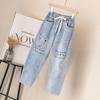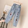 FiveFive Cartoon Embroided Harem Jeans Baggy Ankle-length Denim Pants Lace Up Straight Ripped Vaqueros High Waist Jeansy Big Size