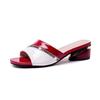 Women's Slippers Fashion Summer New Rhinestone Color Matching Medium Heel High Quality Female Slippers Sandals Ladies Shoes