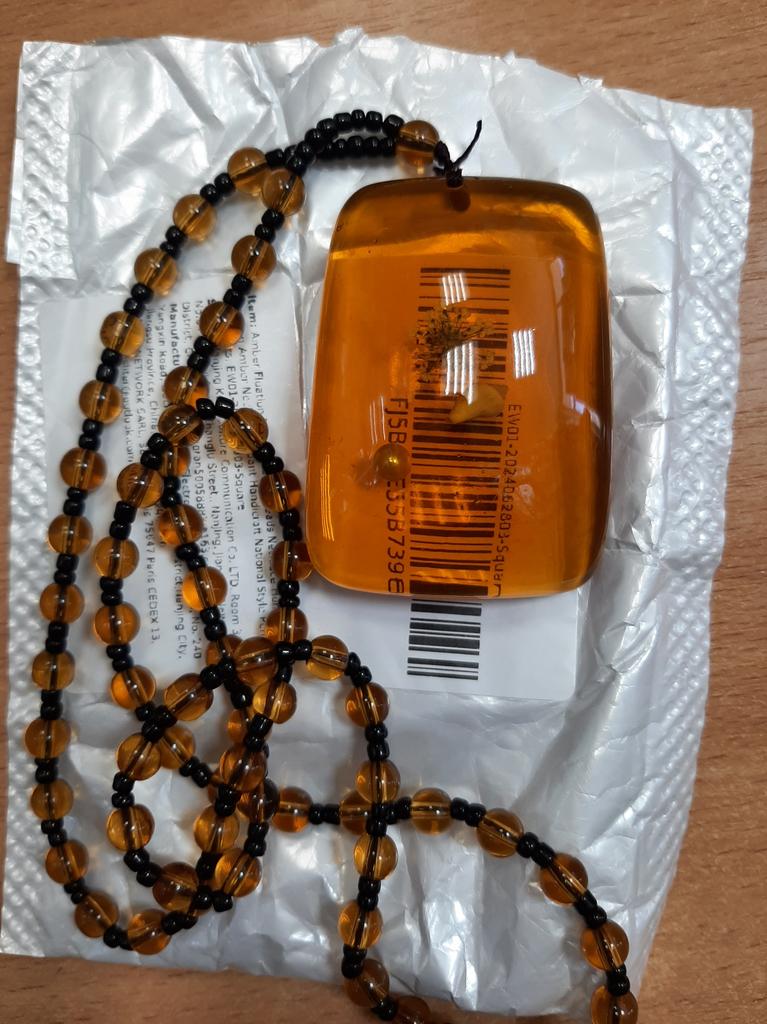 Gana didelis daiktas, atkeliavo sveikas. Nesmirda plastiku, bet ir į žadėtą gintarą nelabai panašus