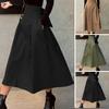 Fashion Elegant Bow Tie Women Skirt Vintage High Waist Split Loose A-line Casual Skirts Female Solid Vintage Bandage Office Ladies Skirt 1081