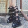 Moteriškos sluoksniuotos tinklinės raukšlės kojų šildytuvai Kawaii šlaunų aukštai kojinės estetinės Y2K prašmatnios kojinės kojų rankogaliai dengia gatvės drabužius