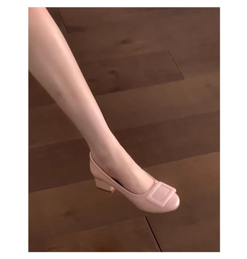 fashion Square Toe Belt Buckle High Heels Solid Color Slip-ons Fashionable Elegant Sexy Simple Women's Shoes Latest 4cm