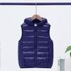 Vaikiška pūkinė medvilninė liemenė rudens ir žiemos vidutinė ir didelė berniukų ir mergaičių liemenė su gobtuvu