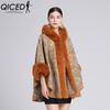 QICED Moteriška ruduo/žiema dryžuota megzta pelerina su gobtuvu