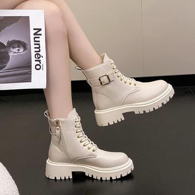 Europos ir Amerikos Vienas Batai Ruduo Naujas 2024 Šariruojami Moteriški Apvalus Pirštas Sagtis Vidutinis Kulnas Trumpas Batai Moterys Zapatos Mujer